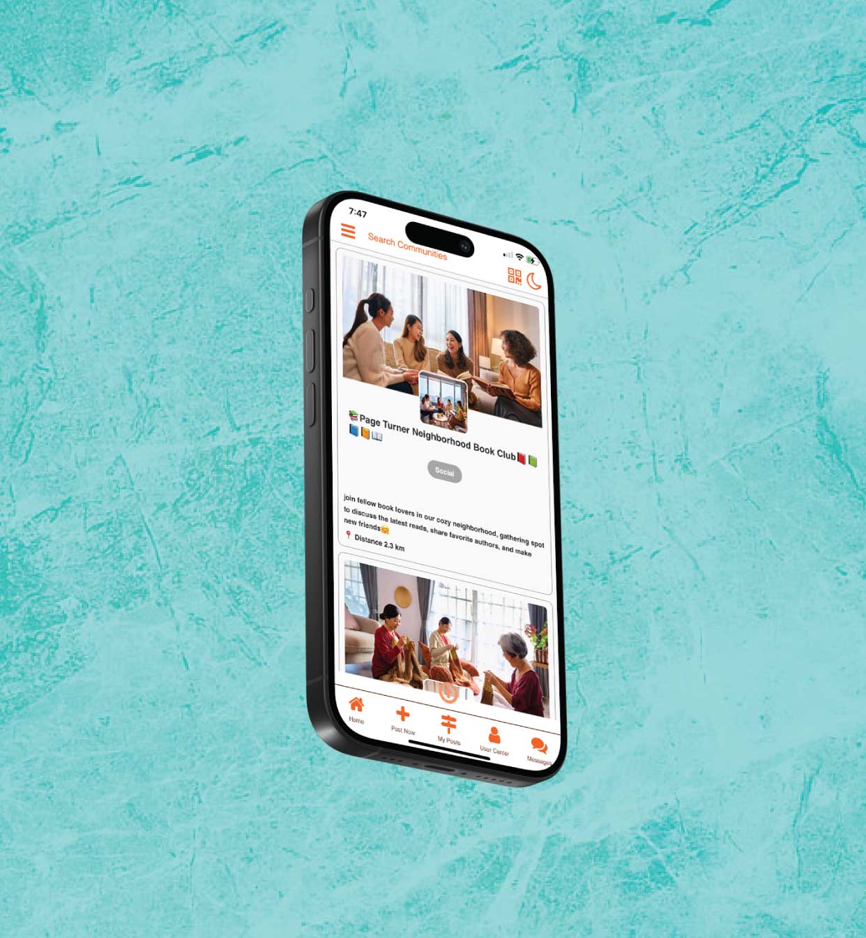 Our App bridges the gap between neighbors, offering a platform to host events, seek help, trade goods, and share news. By engaging in these activities, users can easily meet new friends, build meaningful connections, and foster a stronger, more connected community.